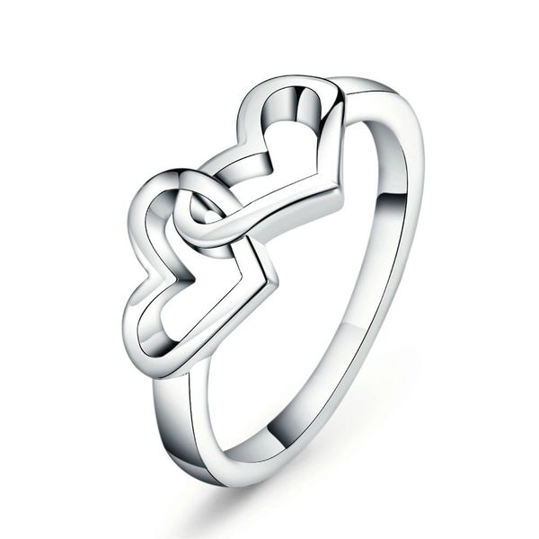 Acheter Anneaux Plaques Argent De Mode 925 Dames Mignonnes Femmes Bagues Double Coeur Charms Anneau De 0 71 Du Nycstore Dhgate Com