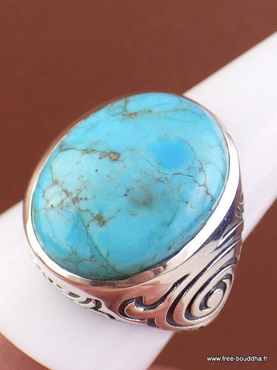 Bague Homme Turquoise Bijou Pierre Naturelle Chakra Gorge Argent Bee48 Wl6