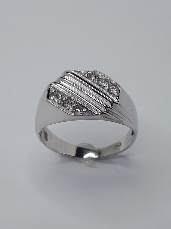 Bague Homme Or Blanc Massif 18k Diamant 0 26ct Vintage Man