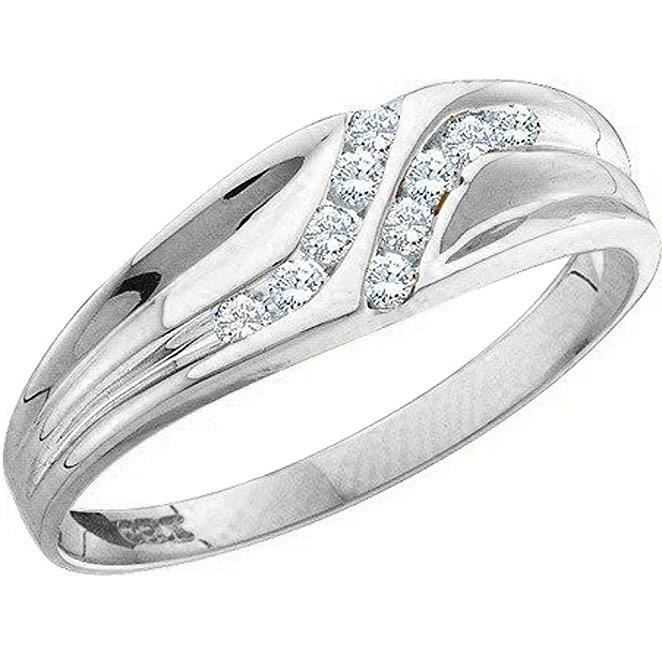 Bague Homme 10 Ct Or Blanc Diamant 0 1ct Diamant
