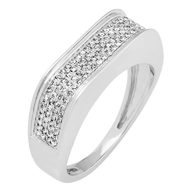 Bague Homme 14 Ct Or Blanc Diamant 0 15 Ct Rond Diamant Pave