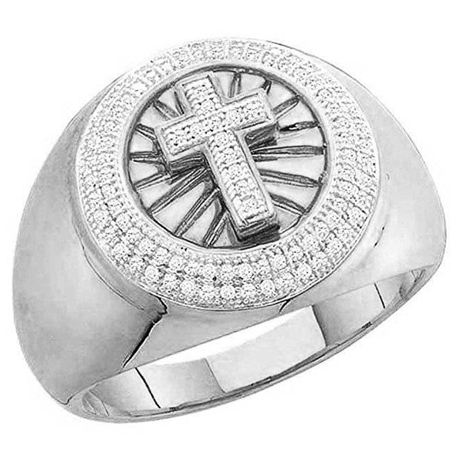 Bague Homme 10 Ct Or Blanc Diamant 0 40 Ct Rond Diamant Hip Hop Cross