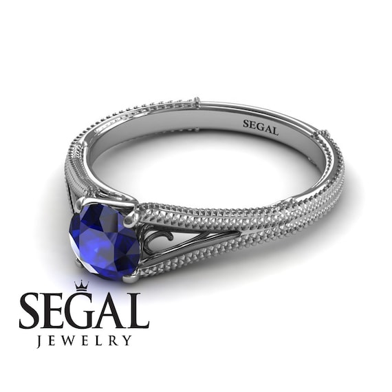 Bague De Fiancailles Saphir Bague Saphir Bleu Or Blanc Bague De Fiancailles Solitaire Bague Antique Bague De Fiancailles Saphir Eva