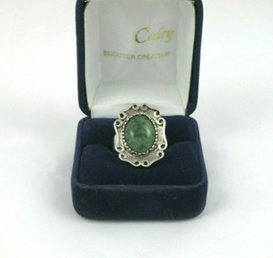 Details Sur Vintage Vert Jade Bague Or Blanc Finition Taille