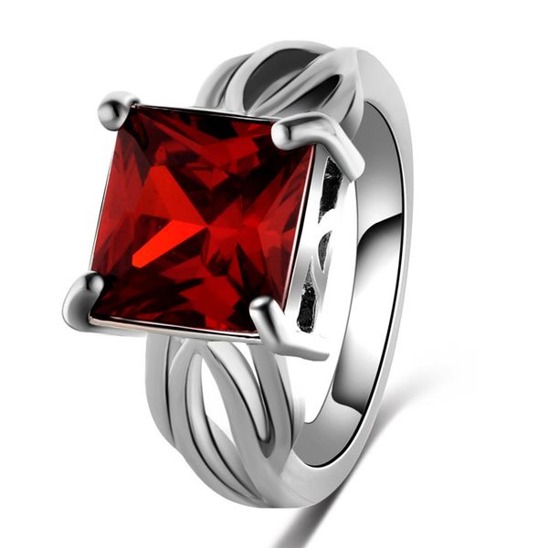 Acheter 2016 Nouveau Romantique Femmes Coupe Carre Bijoux De Fiancailles Rouge Rubis Spinelle 925 Bague En Argent Sterling Taille 6 7 8 9 Livraison