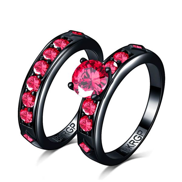 Acheter Brillant Bague Rouge Grenat Rouge Femmes De Mariage De Mariage Bijoux Noir Or Rempli Couple Bague Ensemble Bijoux Femme Male De 8 05 Du