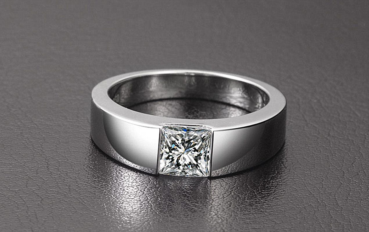 Acheter 1ct Solide En Argent Sterling Anneau Princesse Cut Qualite Fiable Synthetique Diamants Solitaire Anneau Pour Homme Bague De Mariage Homme