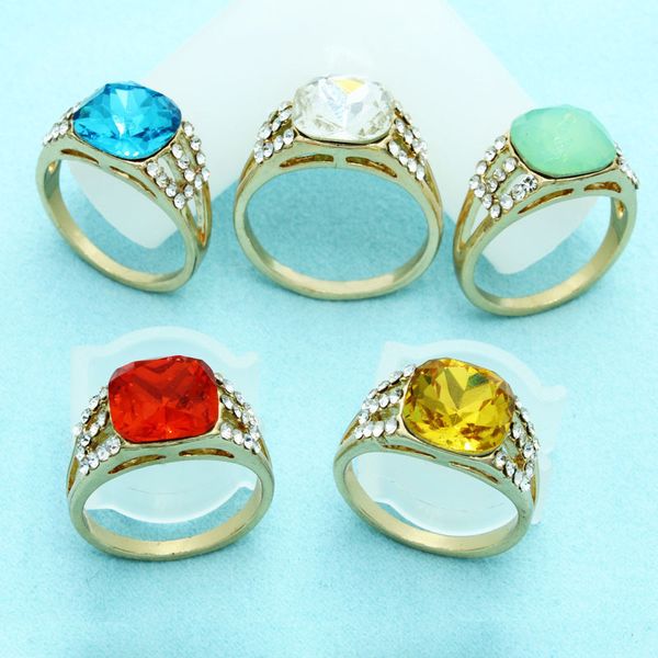 Acheter En Gros Mode Cristal Anneaux Bague En Verre Pas Cher Bijoux Livraison Gratuite Blanc Goldgold Anneaux Plaque Pour Mariage Solitaire Blue