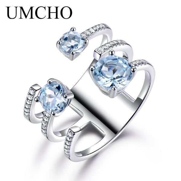Acheter Umcho 1 37ct Veritable Naturel Ciel Bleu Topaze 925 Sterling Argent Double Anneau De Pierre De Fiancailles Bagues Pour Les Femmes Nouvelle