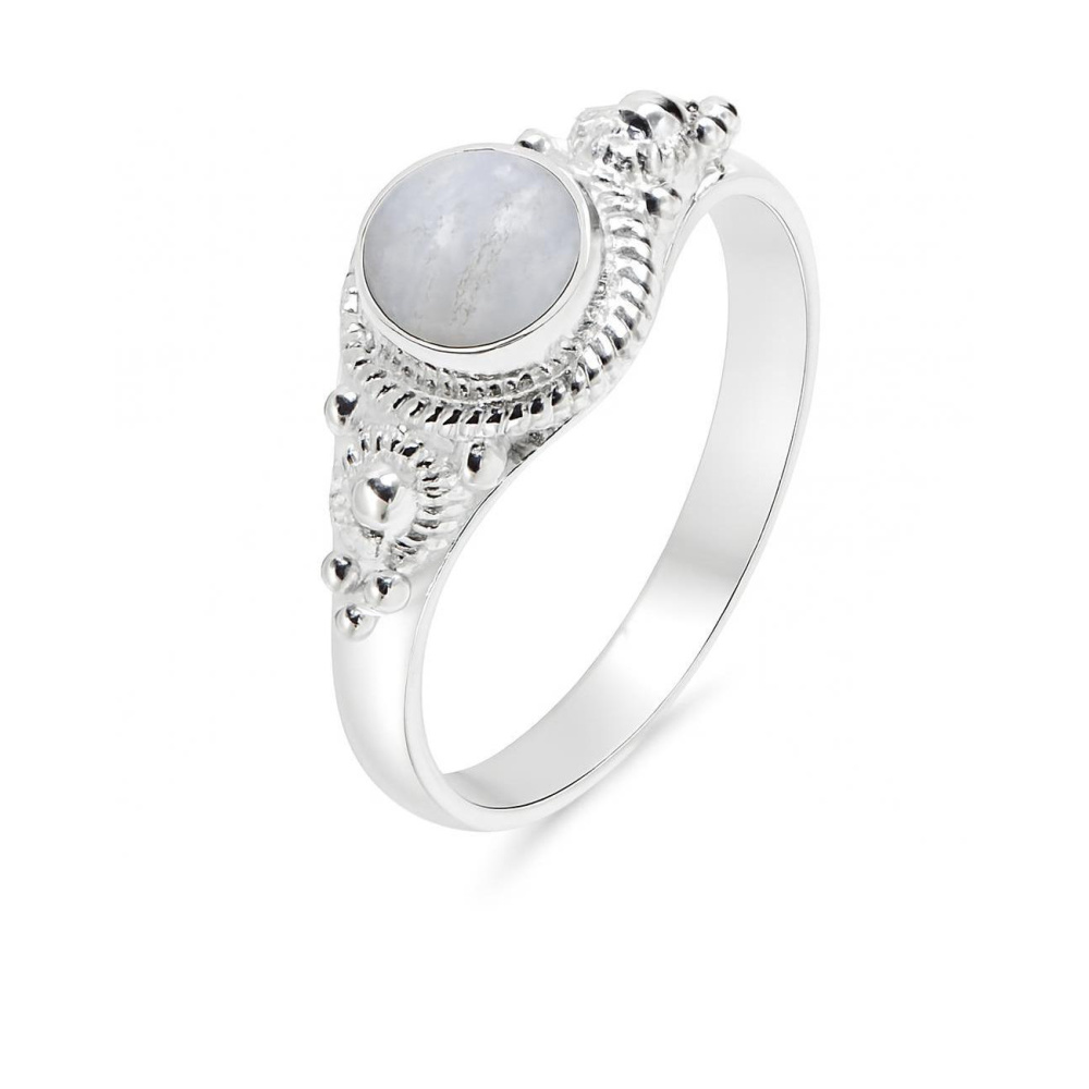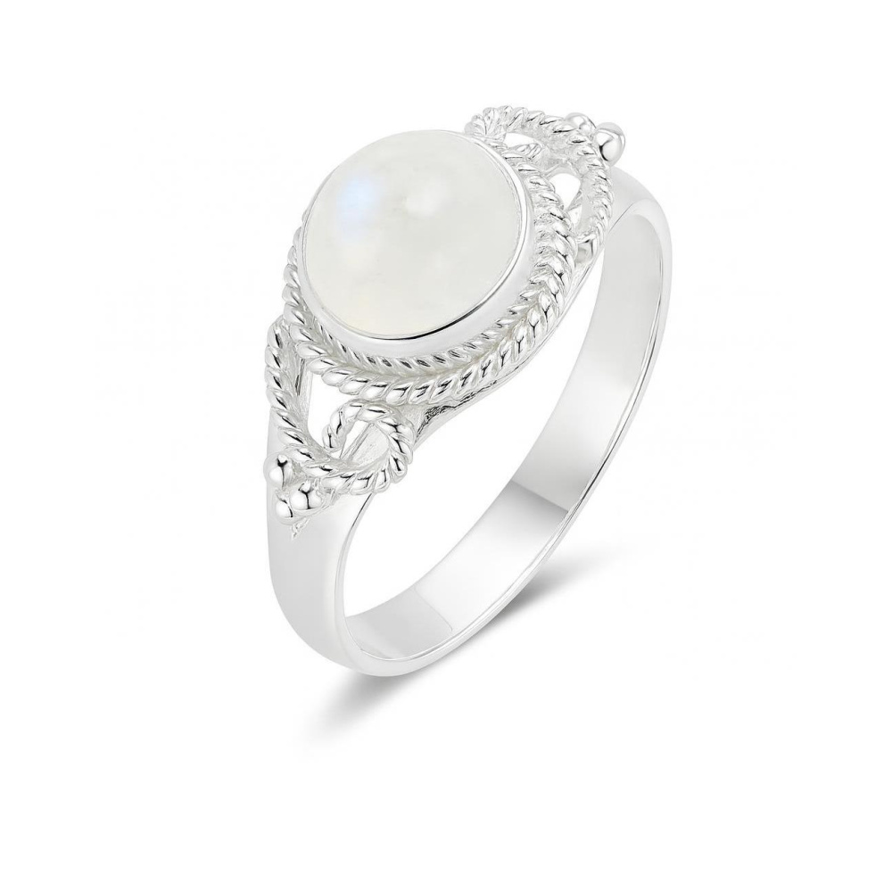 Bague Pierre De Lune Cabochon Et Chainage Argent Aden