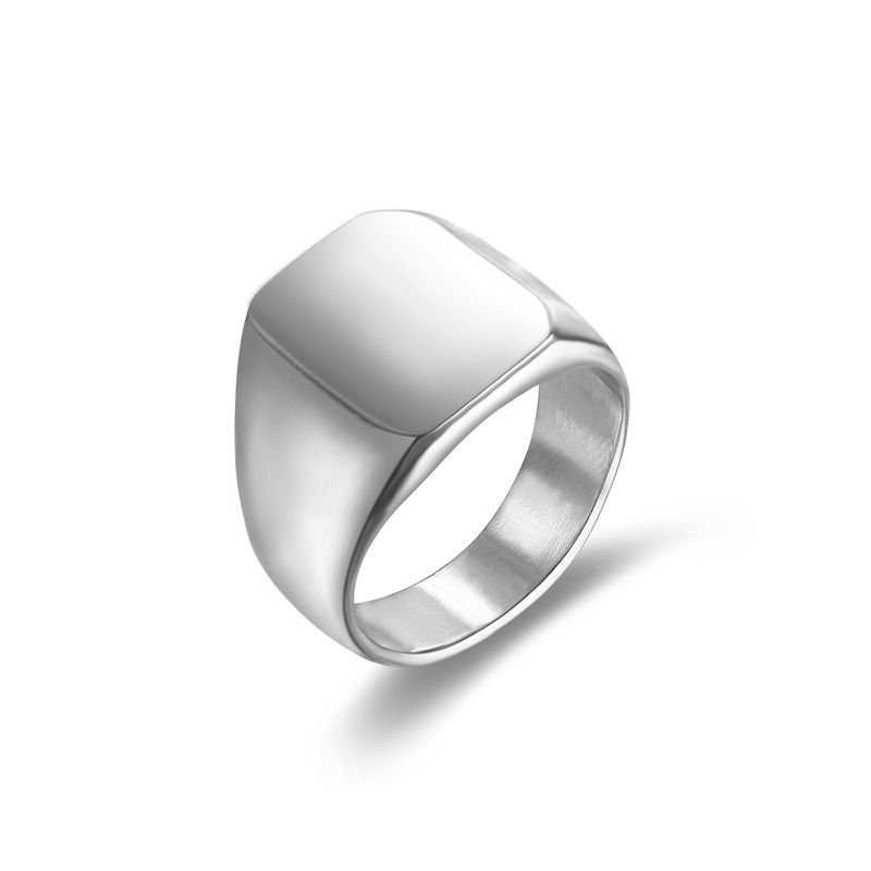 Bague Chevaliere Ring Lisse Homme Carre Business Argent