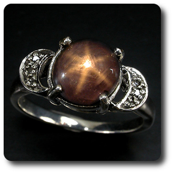 Black Star Sapphire Bague Bague De Saphir Etoile Noir Blanc Or Naturel