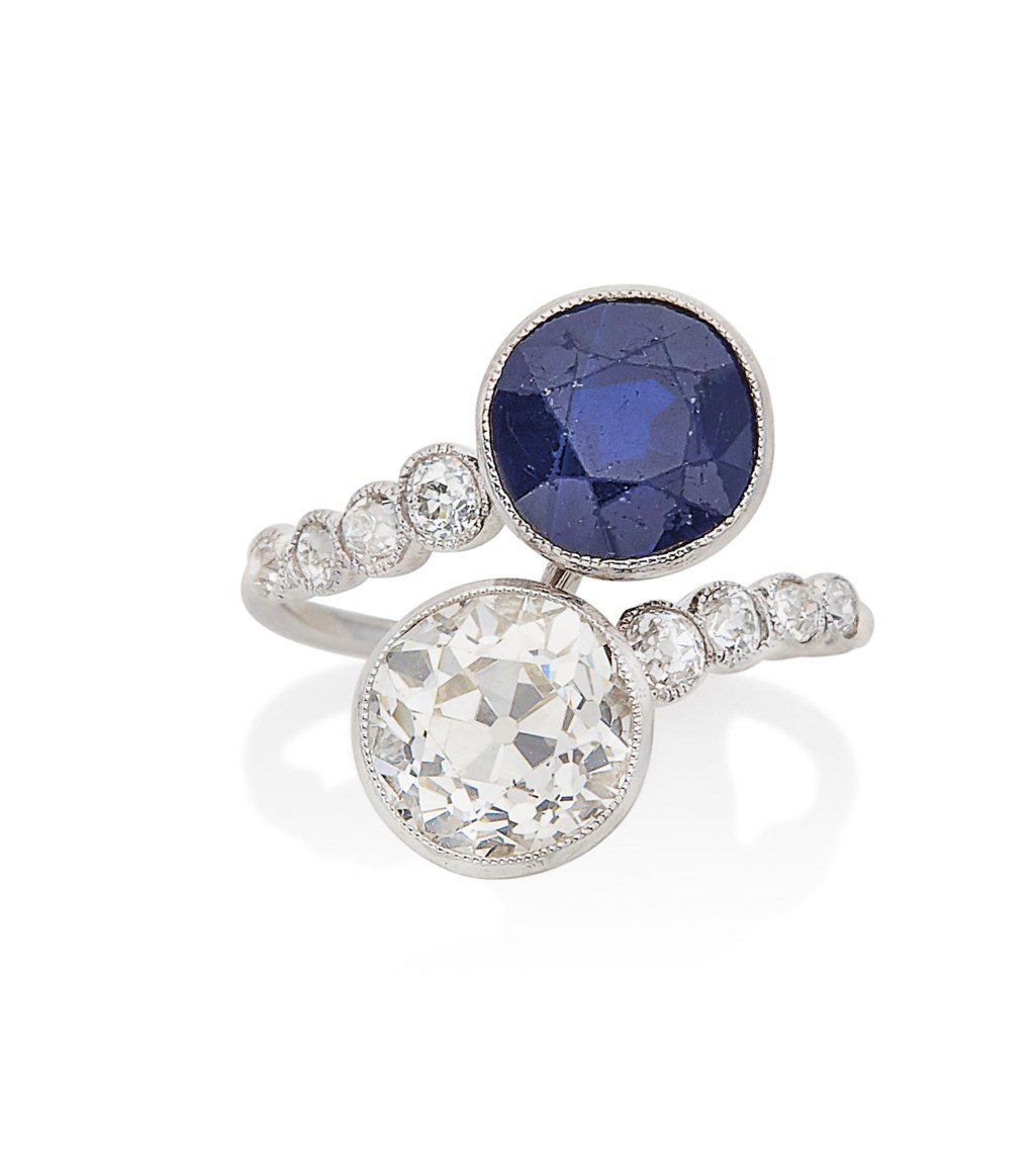 Art Deco Mauboussin Platinum Non Heated Blue Yellow