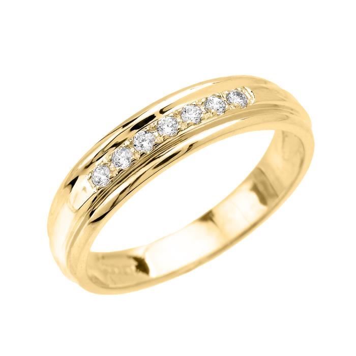Bague Alliance Homme Solitaire Moderne En Or Jaune Diamant