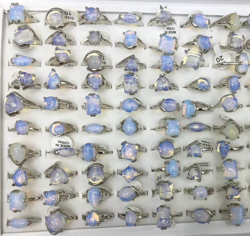 8 63 5 De Reduction Breloque Femme Opalite Pierre De Lune Anneaux Pierre De Naissance Bague Couleur Argent Taille Mixte 20 Pcs Lot In Anneaux From
